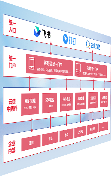 对协作平台提供支持服务,,支持企业应用与协作平台对接,,,,包含组织同步、、消息集成、、、、待办集成等。。。支持目前主流的协作平台:钉钉、、、、企微和飞书。。